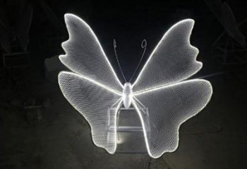 蝴蝶園林燈光亮化不銹鋼網(wǎng)格雕塑