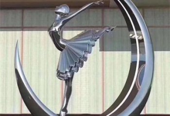 不銹鋼創意月亮上跳芭蕾舞女孩雕塑擺件