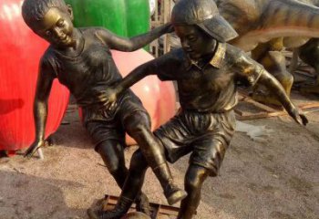 公園玻璃鋼仿銅兒童踢足球雕塑