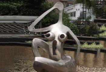 海邊不銹鋼抽象女人雕塑