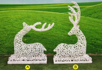 彩繪梅花鹿玻璃鋼雕塑,照明發光環繞