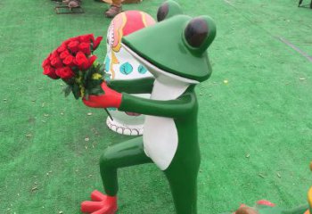 玻璃鋼雕塑,玫瑰青蛙拿玻璃公園裝飾