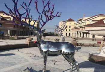 大型不銹鋼藝術梅花鹿雕塑