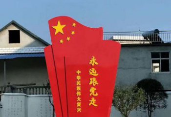校園不銹鋼彩繪不忘初心旗幟雕塑