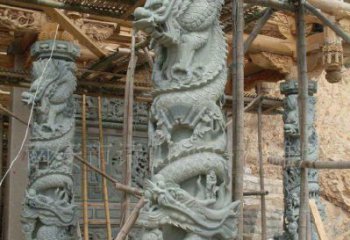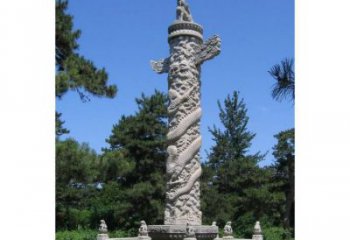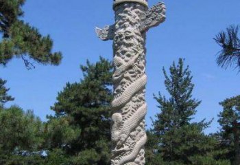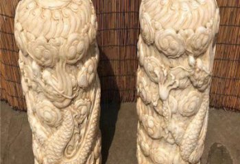漢白玉浮雕龍盤石柱子在寺院門口擺放的藝術之美