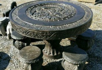 仿古青石休閑庭院裝飾浮雕圓桌石凳