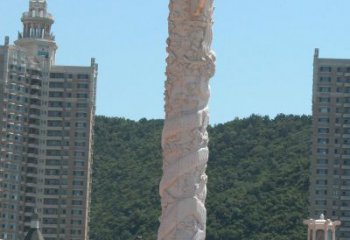 青石浮雕龍柱,精美石雕園林景觀裝飾